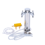 Pour fancy with our stainless steel dual tap draft beer tower. Comes with a two way gas manifold, 5 feet of gas hose, and hose clamps. Great for beer, but not just for beer – this lovely tower does a great job of delivering any beverage you happen to be kegging.