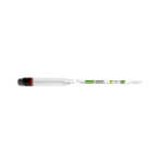 It has multiple ranges and three scales to suit almost any homebrew situation. It’s calibrated to 68 degrees F with a specific gravity range from 0.80-1.115.